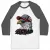features raglan 3/4 sleeves and a modern fit that is perfect for a day