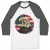 features raglan 3/4 sleeves and a modern fit that is perfect for a day